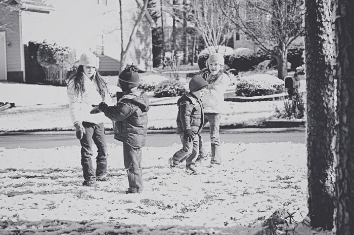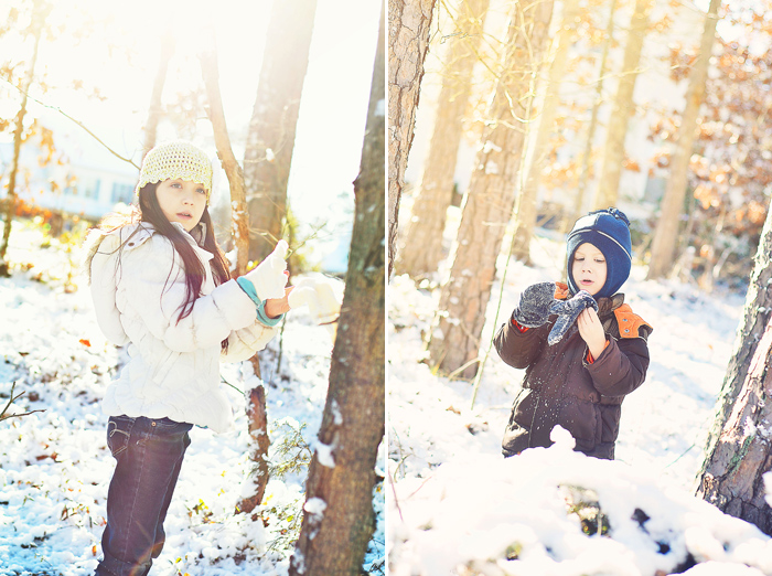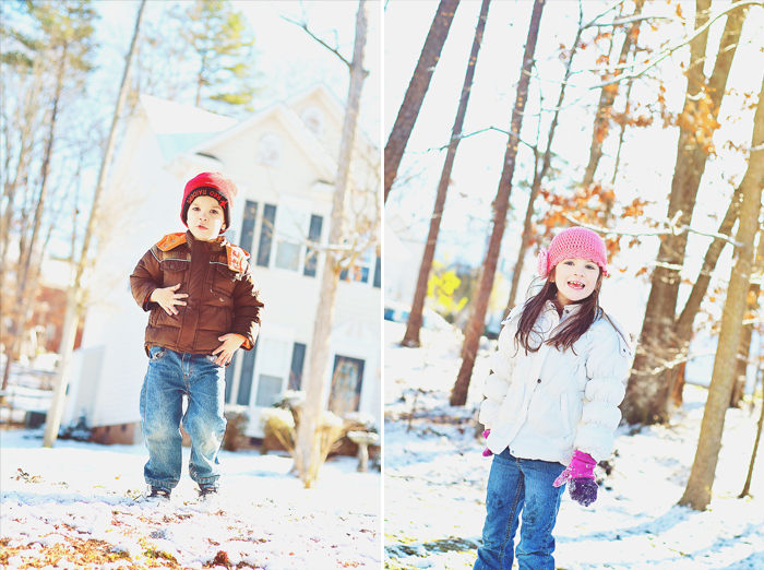 NC is certainly unpredictable when it comes to the weather! It’s winter, of course, but not like the Wisconsin winters I grew up with.. nor the FL winters I enjoyed for 15 years… instead it can swing from 70 degrees to 20 degrees in the matter of a day. This past week, we got to experience something that makes most NC’ers happy… we got snow! The first round early in the day just melted… but round two that evening stuck around for an evening and a morning. The kids begged me to play in it, and so I obliged! They had a blast and I lost almost all the feeling in my fingers grabbing a few pics of them 🙂