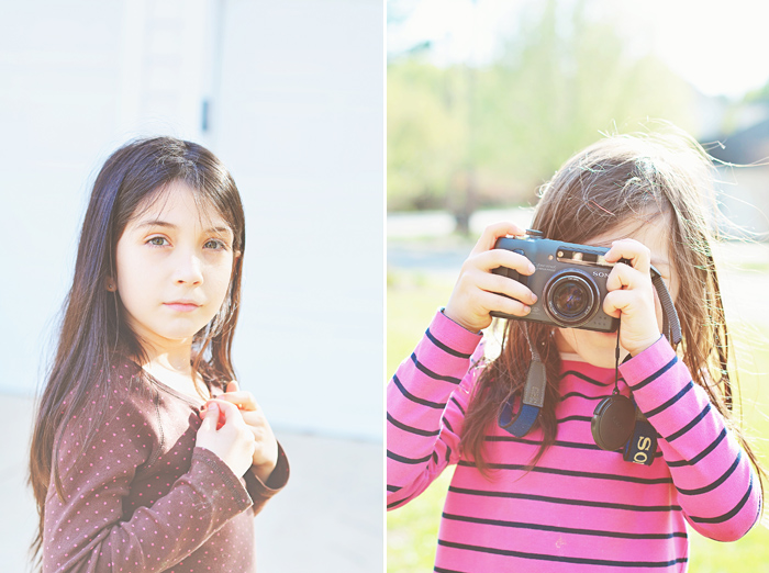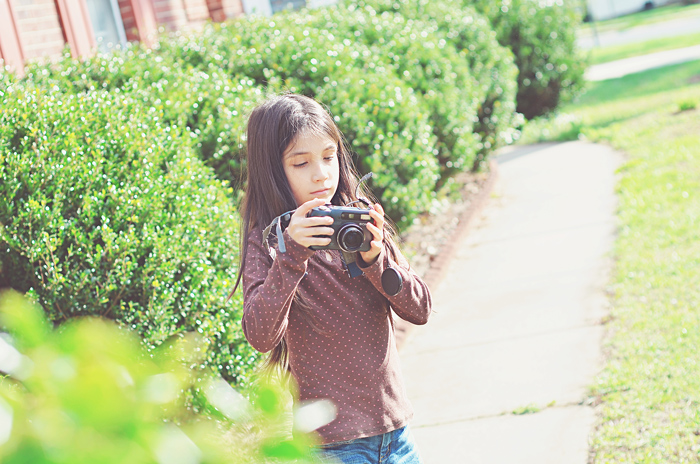 The weather has been up and down again (what is with this cold year??)… but thankfully a little more ‘up’ in the afternoons this past week [we won’t count today’s 40 and raining in that statement] so we have been able to spend some time outside! Kinley has been very interested in photographs/photoshop lately.. so we busted out the really old Sony digital camera and let the girls have a ‘go’ at it. Of course, Myleigh gladly volunteered to model.  As soon as I find the cord (ha!), I’ll upload their pics so they can get a good look at them.  It’s amazing to me how far digital technology has come in a few short years!