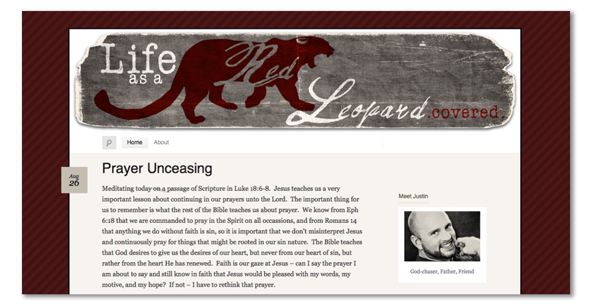 I had an idea to set my brother up with a blog where he could share what he’s doing and learning. He thought it was a great idea too, so I’ve been working with him to get a simple blog up. It’s a basic template with a header that I designed for him (the leopard borrowed from a project he is working on).   I hope he gets lots of use out of it!  I’m looking forward to keeping up with him better through it~!