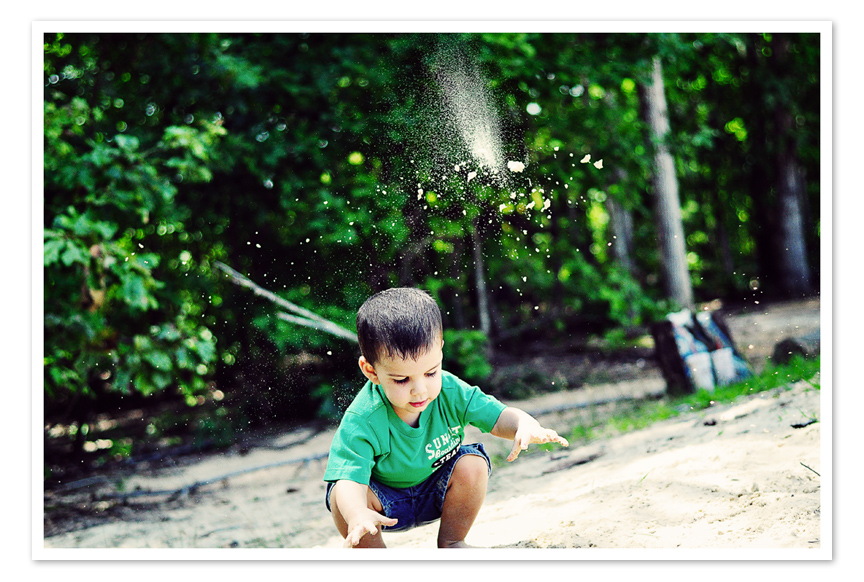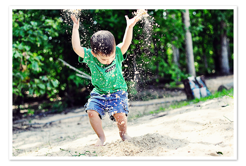 Life with Captain Crazy is never dull!  And well, in fact, it’s never *clean* either!  I never knew that a child could enjoy mess, dirt and grime so much.   If there is dirt (or in this case, sand) to be found… he will find it!  And then he will throw it everywhere and possibly even lay in it.  It does make for some fun photos though!